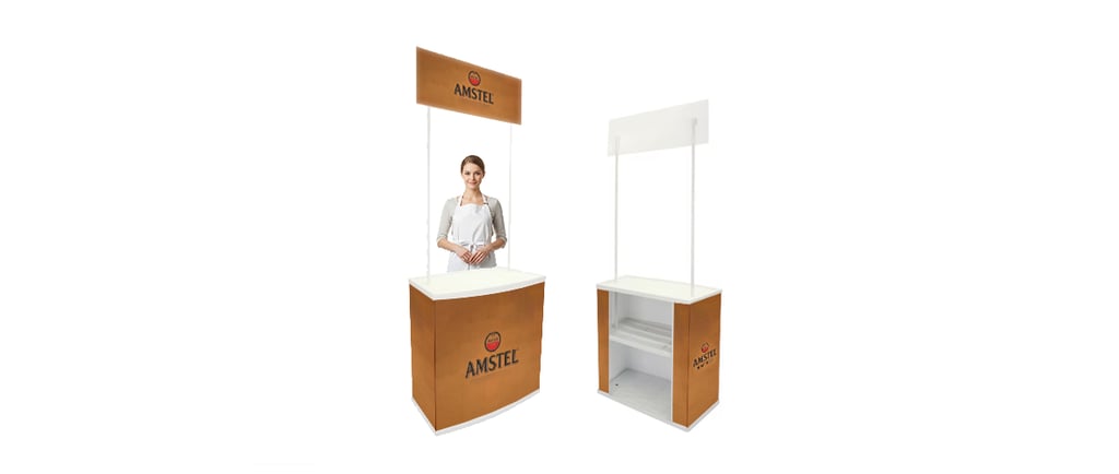 Esse modelo é muito utilizado em ações de degustação, campanhas promocionais em supermercados, shoppings, eventos corporativos e stands de feiras.